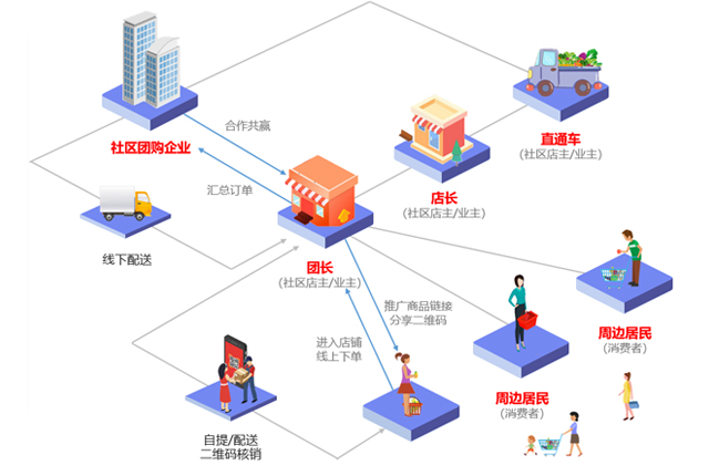 社区团购,是通过微信平台结合社区社群资源,形成由商家集中管理运营的一种商业模式。平台统一提供相应产品,通过小区团长辐射小区用户,用户下单,平台可直接发货至用户或用户至团长处自提。